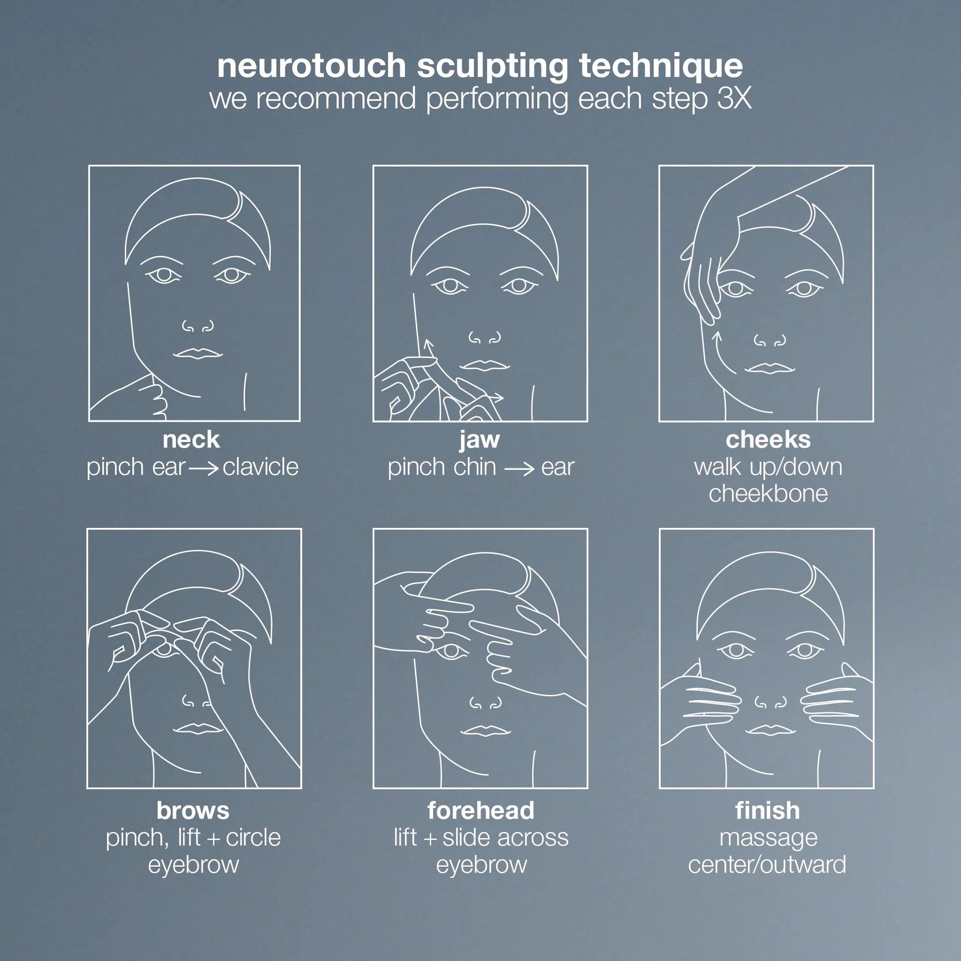 Use daily. Shake well. Apply 4-6 drops onto clean skin, massaging in firm upward strokes. Keep out of eyes. Pair with the NeuroTouch sculpting technique, alone or with a partner.